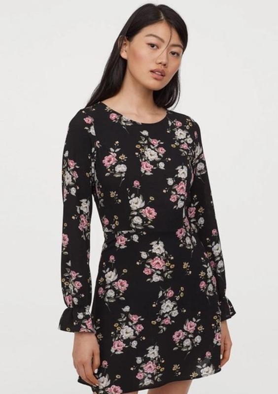 Короткое платье с круглым вырезом горловины, длинные рукава с узкой эластичностью и резинкой на манжетах, юбка в форме колокольчика. Размер 10. Материал: 97% полиэстер, 3% эластан.