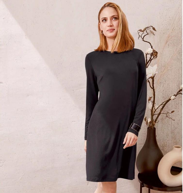 Сукня Есмара р.С 36/38 євро Нова,з біркою колір чорний 95% поліестер 5% еластан тканина на дотик щільна,добре тягнеться Якість чудова! Довжина 89 ПОГ 46 ПОБ 49 рукав 60см.