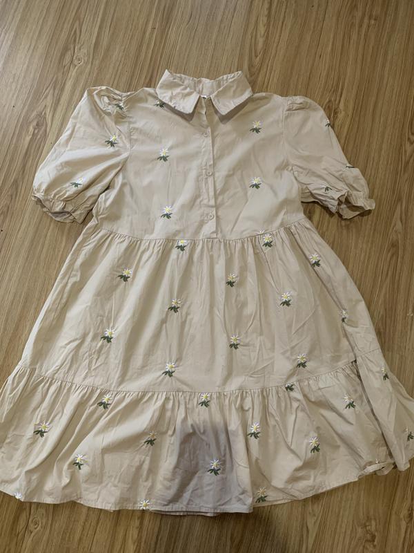 Нежное платье бежевого цвета.
