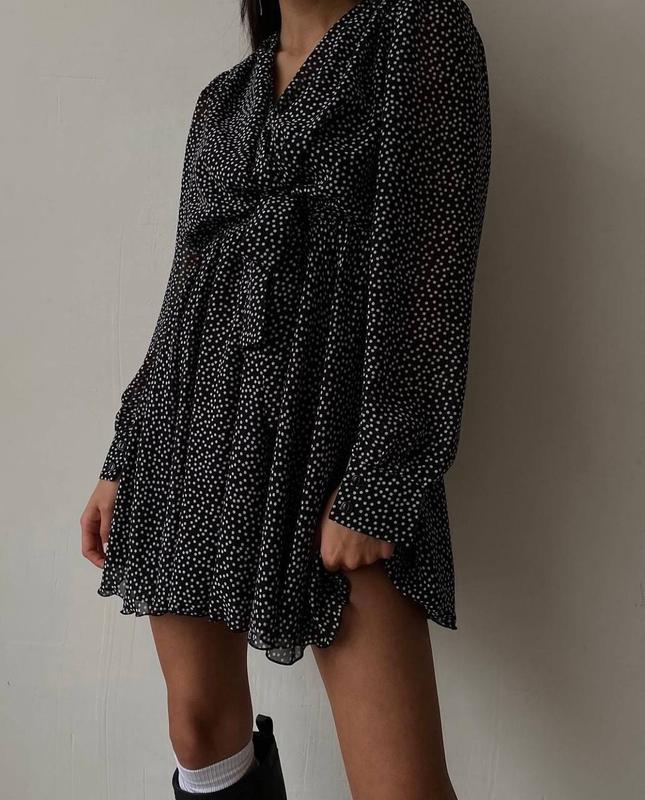 Класична чорна сукня у горох з імітацією запаха, пояс на резинці🤓 Ціна - 475 грн. ➡️Мод: 1123 ➡️Розміри: 42-44, 44-46 ➡️Колір: чорний, св беж ➡️Тканина: софт принт Довжина 85см раз6220