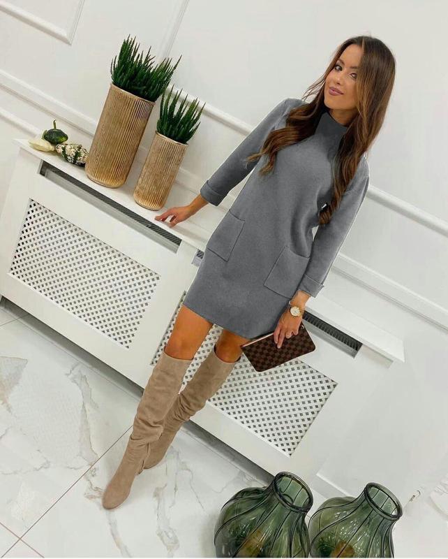 ✅Розмір: 42-44,46-48,50-52. Сукня 😍 ✅Модель: 144. ✅Тканина : Ангора щільна двостороння. ✅Кольори: чорний, сірий. Сукня вільного крою, тканина м'яка, щільна і дуже приємна, у цій сукні вам буде тепло та затишно. Пошиття та якість відмінна.