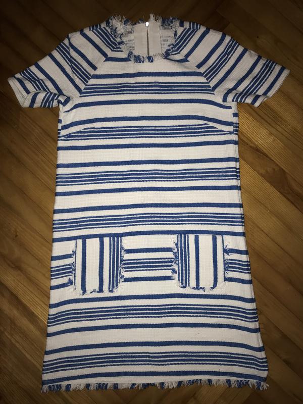Бирок нет никаких. Ткань-хлопок с синтетикой. Нюанс на последнем фото-пятна внизу спереди.