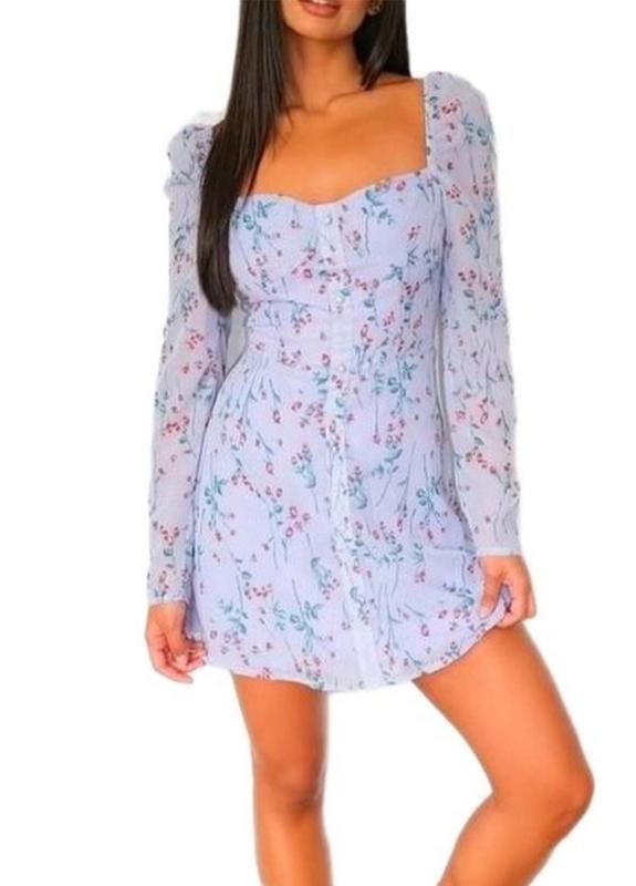 Красива і романтична жіноча сукня, з дуже приємною до тіла тканиною, не просвічується за рахунок підкладки всередині, має актуальний виріз і колір, з квіточками, в ньому ви не залишитеся не поміченим ✨ маломірить, 100% поліестер пог 50, пот 42, внутрішній шов рукава 45, поб 60, довжина від плеча 88, по спинці внутрішня блискавка, на підкладці