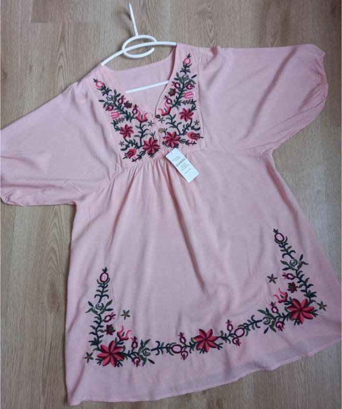 Плаття, туніка, оздоблене вишивкою, 55 % коттон, 45 % поліестер, нове. Довжина 85 см, ПО під пахвами 59 см, нове. Підійде для вагітних. Стан нове Ціна 349 грн