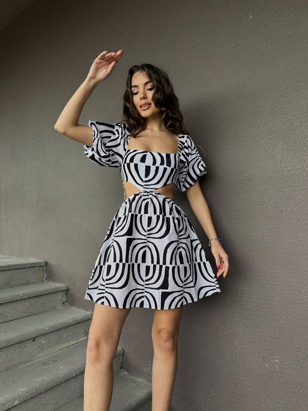 Стильное летнее платье. Актуальный принт. оригинальный вырез на талии