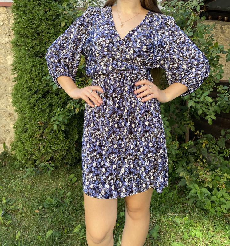 Сукня вільного крою з тканини з візерунком. широкі рукави фонарики з зібраними гумкою манжетами зав’язуваний пояс довжина міні