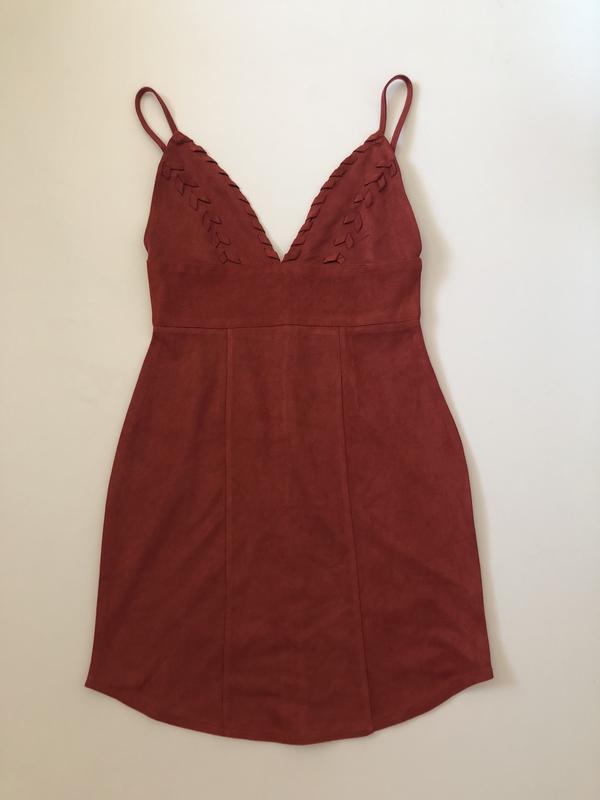 Очень классный сарафан, ткань под замш, красивый насыщенный кирпичный цвет, классно носить под футболку Длина с учётом бретелек 74, от подмышек 47, пог 31, пот 30, поб 37, ткань тянется