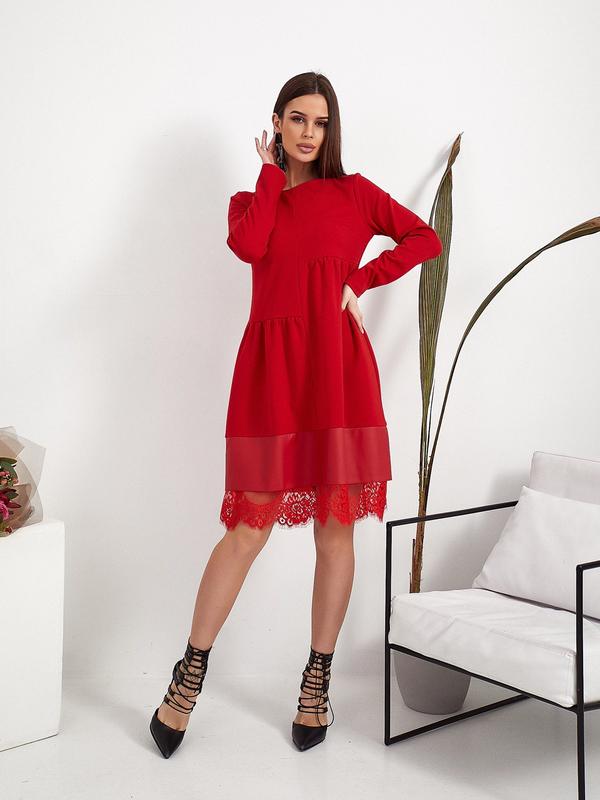 Платье деловой трикотаж с эко кожей и кружевом для девушек - юных и не очень. Завышенная линия талии, длинный рукав, свободное по бедрам - 100% сядет на каждом типе фигуры. Качественный дорогой полунатуральный деловой трикотаж Алекс - плотный (без начеса), эластичный, очень приятный к телу; высокие эксплуатационные характеристики - относительно стирки и глажки - Вы поймете - что это тот случай, когда в жизни лучше чем на фото. Артикул 442. Размеры: 42, 44, 46, 48. Цена опт 670 грн. Дроп 745 грн. Розмеб 820 грн.