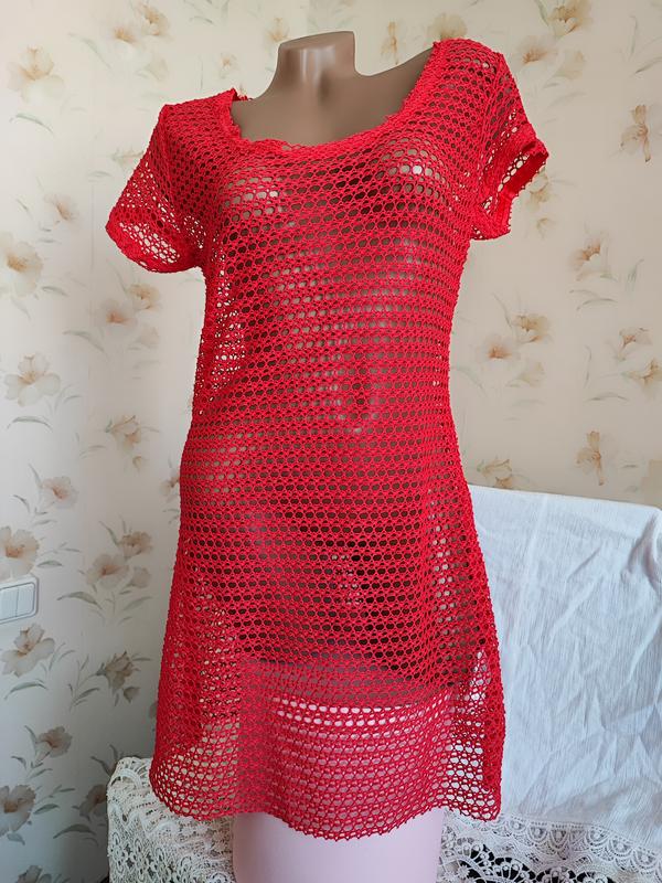 Пляжна брендова сукня-туніка яскравого кольору. Можна носити поверх іншого одягу. ПОГ-ПОТ-ПОС 48-44-50 см., тягнеться. У плечах 42 см. Довжина рукава 10 см. Довжина по спинці 86 см. Стан нової речі без паперової бирки. Сліди носіння немає. Дефектів немає.