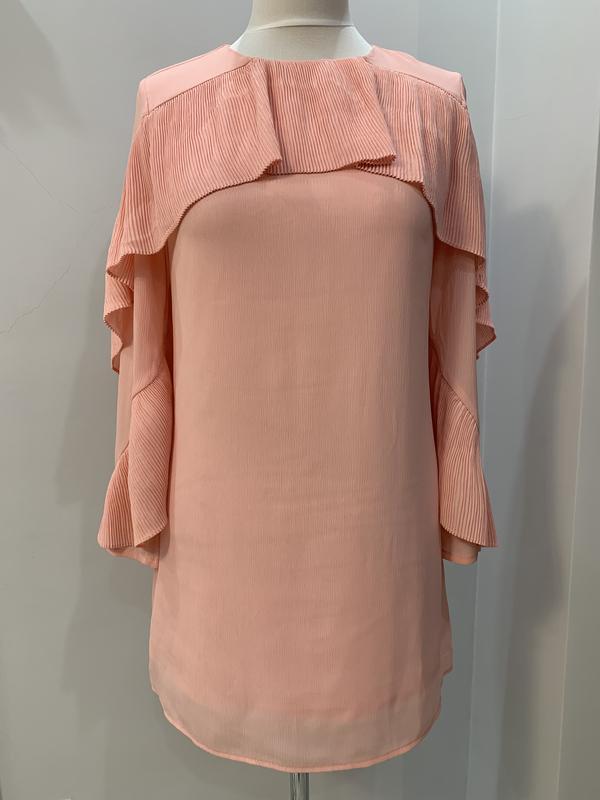 Сукня дуже гарного персикового кольору, стильні рукавички, тренд 2023 року Довжина 81 см ПОГ 46 см ПОТ 45 см ПОБ 47 см Плечі 39 см Рукав 57 см