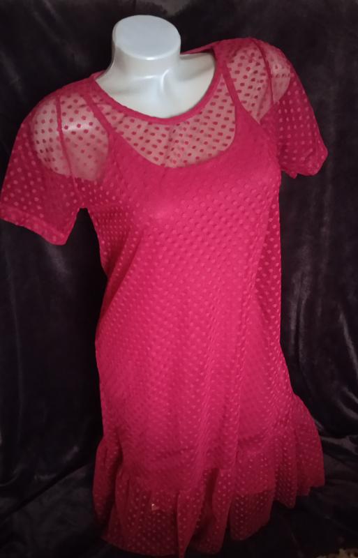 1=2 (приобретаете 1 единицы из указанной акции, и вторую меньше по цене выбирайте себе в подарок🎁) Платье, которое имеет основу из красиво обтягивающего трикотажа, садится и по талии и сетки, которая смотрится шикарно и идет свободно. Размер Л, цвет бордовый. Если нужны замеры, обратитесь