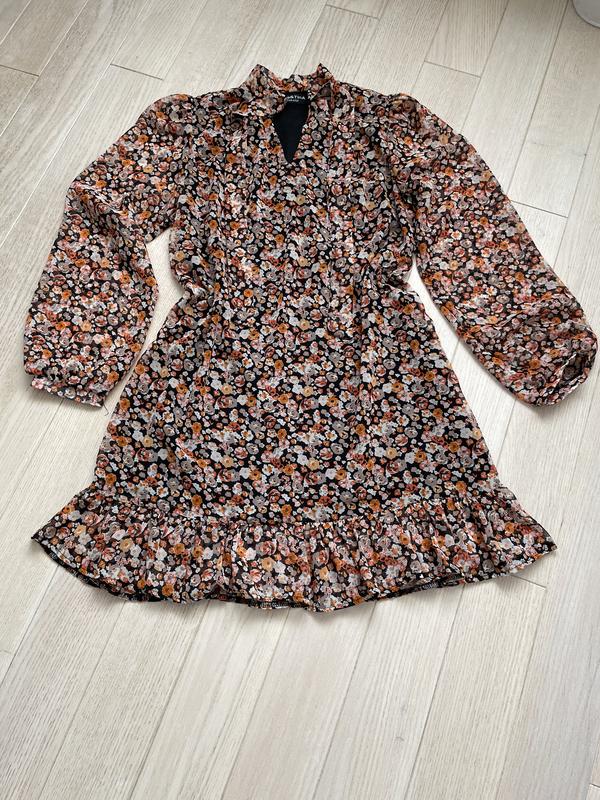 Плаття,стан прекрасний ,осінній принт легеньке ,на підкладці рукави без підкладки Розмір 36(xs,s) Довжина 84 см Пів обʼєм грудей 44 Пів обʼєм стегон 48 Плечі 33, Рукав 57 см