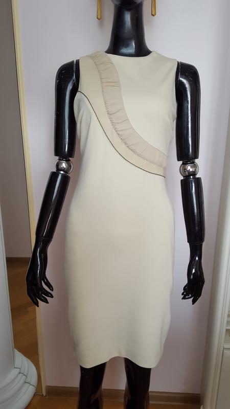 Платье Blumarine. Очень красивое и стильное платье ,платье имеет вставку из натурального шёлка и натуральной бежевой кожи с металлической цепочкой. Подкладка стопроцентный шёлк. На последнем фото нюанс , на платье есть два пятнышка , платье надо постирать , либо отдать в химчистку. Размер платья : длина 93 см ,полуобхват груди от подмышки до подмышки в спокойном состоянии в нерастянутом виде 44 см , но тянется до полуобхват груди 48 см, полуобхват талии в спокойном состоянии в нерастянутом виде 34 см , но тянется до полуобхват талии 39 см, полуобхват по бёдрам в спокойном состоянии в нерастянутом виде 44 см , но тянется до полуобхват бёдер 56 см.