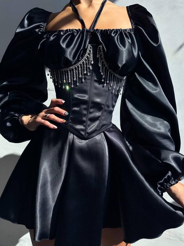 Идеальное атласное платье с корсетом со стразами, платье мини с корсетом атлас, платье мин...