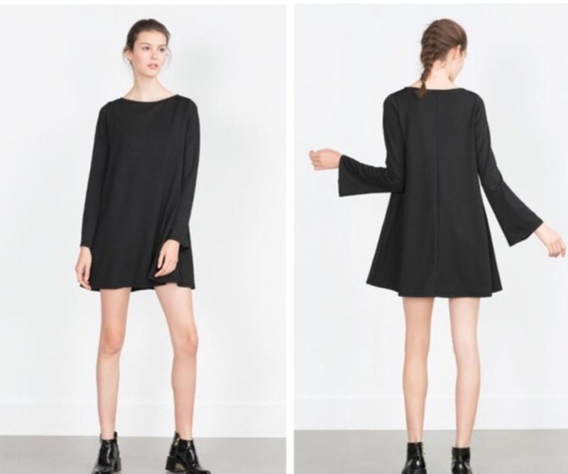 Чорне плаття Zara.Крій трапеція,рукава розширені.Тканина як жатка.Виглядає стильно.Стан нового.Заміри зроблю.