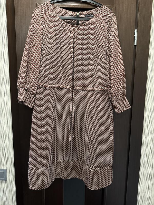 Практично нова і дууууже симпатична сукня. Родзинкою є золотий замочок на спині і рукавчики оздоблені двома золотими гудзичками. Рукава 3/4. Пояс регулюється шнурівочкою. Є підкладка. Довжина 95см, довжина рукава від горловини 55см, ширина під руками 54см