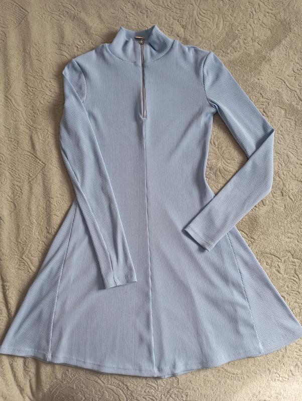 Гарне плаття в рубчик. Стан нового. Одягнено було 2-3 рази. Вживу колір насичено блакитний. Розмір s. Заміри надам.