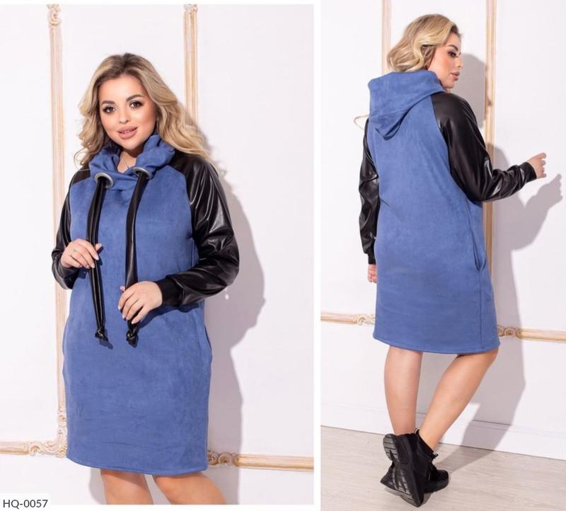 со24.10 хл Сукня HQ-0053 сукня-худі Розмiри: 48-50, 52-54, 56-58, 60-62 Сукня-худі Кольори: чорний, хакі і джинс Матеріал: замша на дайвінг, еко-шкіра ♥️___________♥️___________♥️