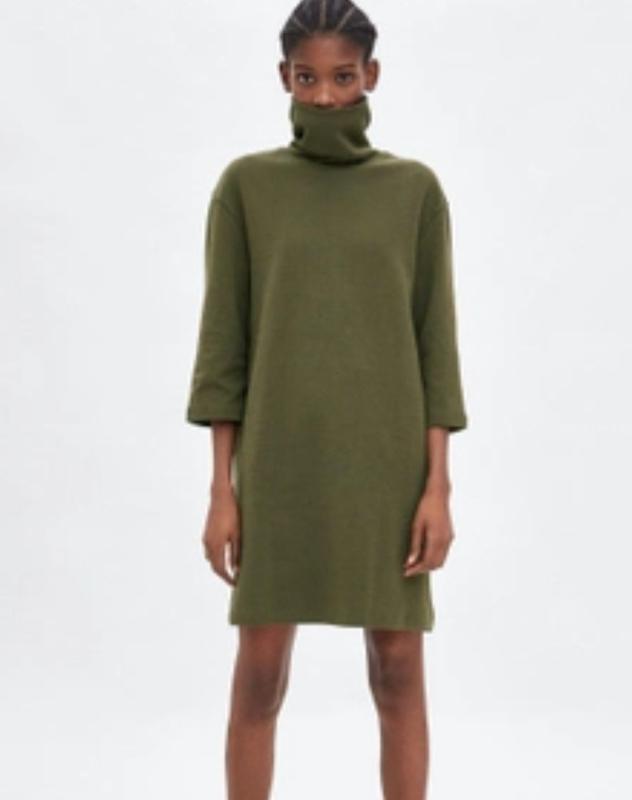 🌿трикотажне плаття від Zara в кольорі хакі, крій вільний Розмір:S Заміри:ПО грудей 45 см, довжина 80 см