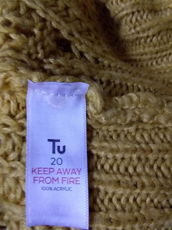 платье-свитер на красивую пышную фигурку. цвет более жёлтый чем коричневый. пог. 63. поб 63. длина 84. плечо спущено. красивый рисунок вязки.
