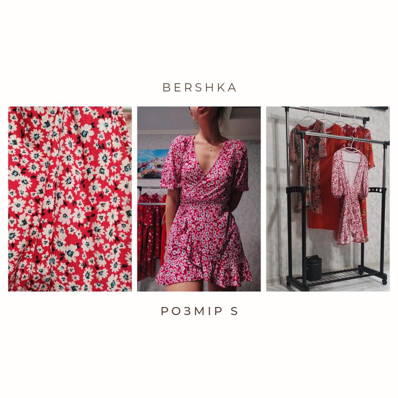 Квіткова літня сукня - Bershka, розмір - S, приємне до тіла, на запах, резиночки на рукавах.