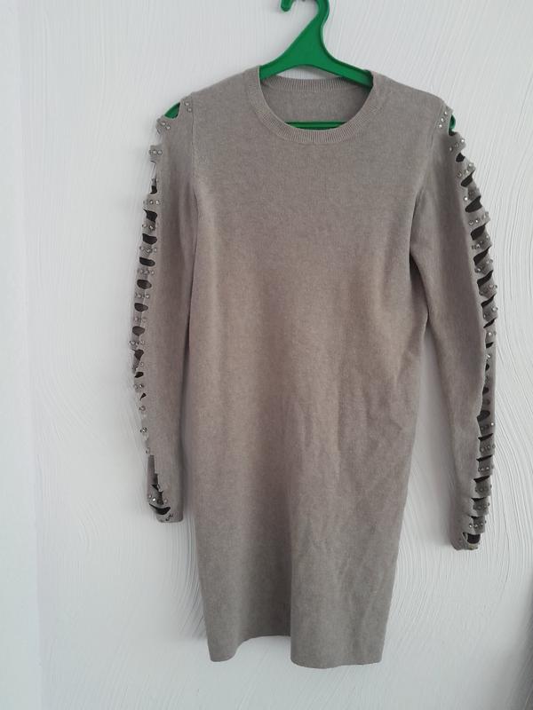 Платье теплое в рубчик, с камушками. Состояние новой, одета 1 раз.