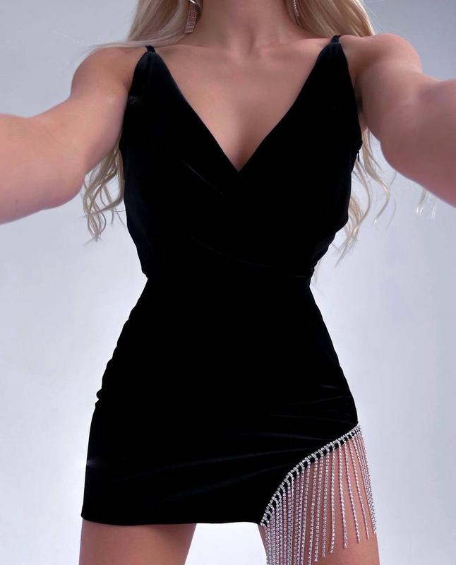 Новинка🖤 Сукня Модель kd 1092 ▪️Розмір: 42-44, 46-48 ▪️Тканина: королівський оксамит+бахрома каміння ▪️Колір: чорний