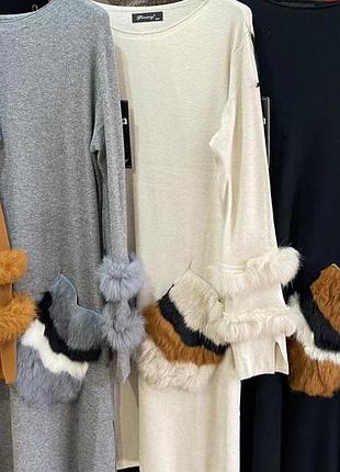 Плаття ангора, супер якість. Кишенька і декорування рукавів - натуральне хутро. Розмір універсальний: 46- 52