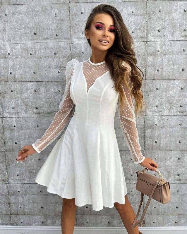💣💣💣РОЗПРОДАЖ. Black Friday💣💣💣 Мод.1604 Ніжне плаття із рукавами з ажурної сітки. ✔Розміри білий - 42-44 ✔Тканина - велюр+сітка. Супер якість! Стильно MODNO!