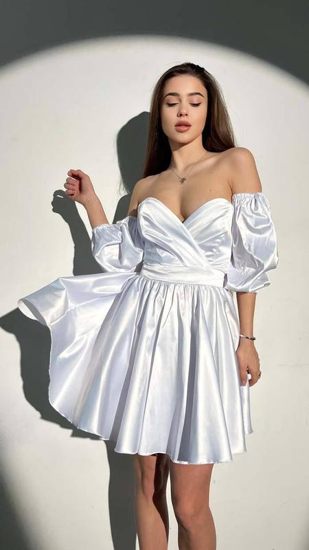 Атласна міні сукня з бафами