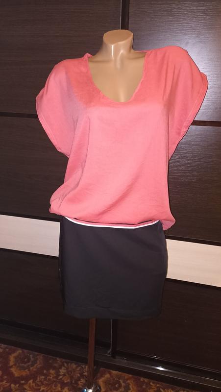 Очень классное и необычное платье. Интересный фасончик. Верх типа ситца. Низ костюмная ткань. Спереди с напуском. Сзади свободно. ОГ 116 см ОТ 86 см ОБ 102 см Длина (примерно) 79 см