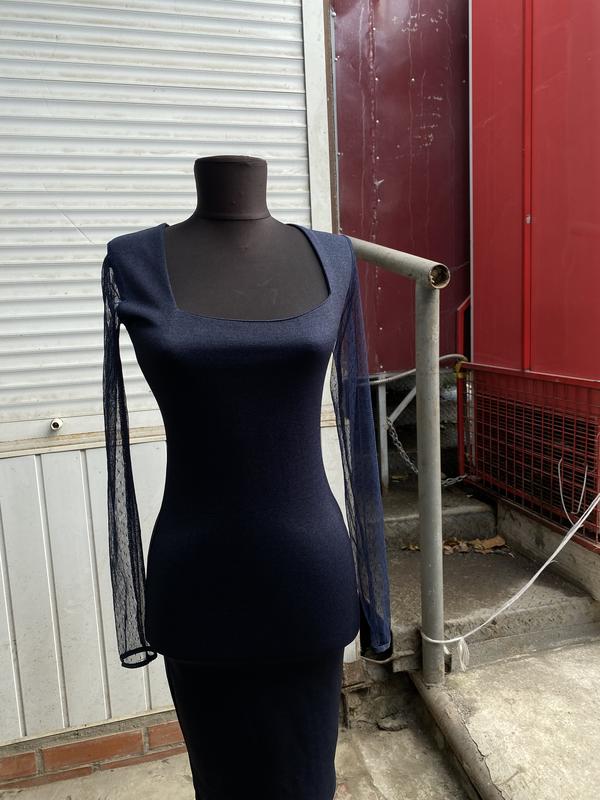 Плаття темно-синього відтінку Рукав сіточки ,стильне і сучасне
