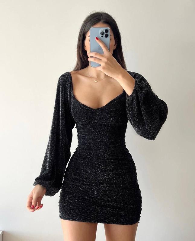 Сукня 🏷 Ціна - 699 грн ⠀ ▫️Кольори: чорний ▫️Розміри: 42-44, 46-48 ▫️Тканина: трикотажний люрекс ⠀ Універсальна чорна міні сукня з люрексу. По боках сукні йде збірка, груди підкреслені рельєфним ліфом. Об‘ємні рукава додадуть романтичності в твій образ, а фасон плаття зробить фігуру дуже спокусливою. ⠀ Модель 073.78
