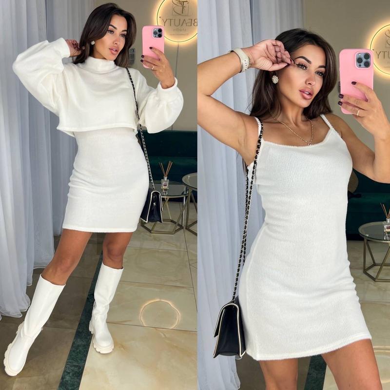 🥂Хіт продажу🥂 🌿Сукня+светр Модель: 022 Розміри: 42-46. Тканина: Якісна Ангора рубчик Туреччина Кольори: Чорний, Молоко, Кемел. Ціна: 650 грн🏷 Сукня на бретелях