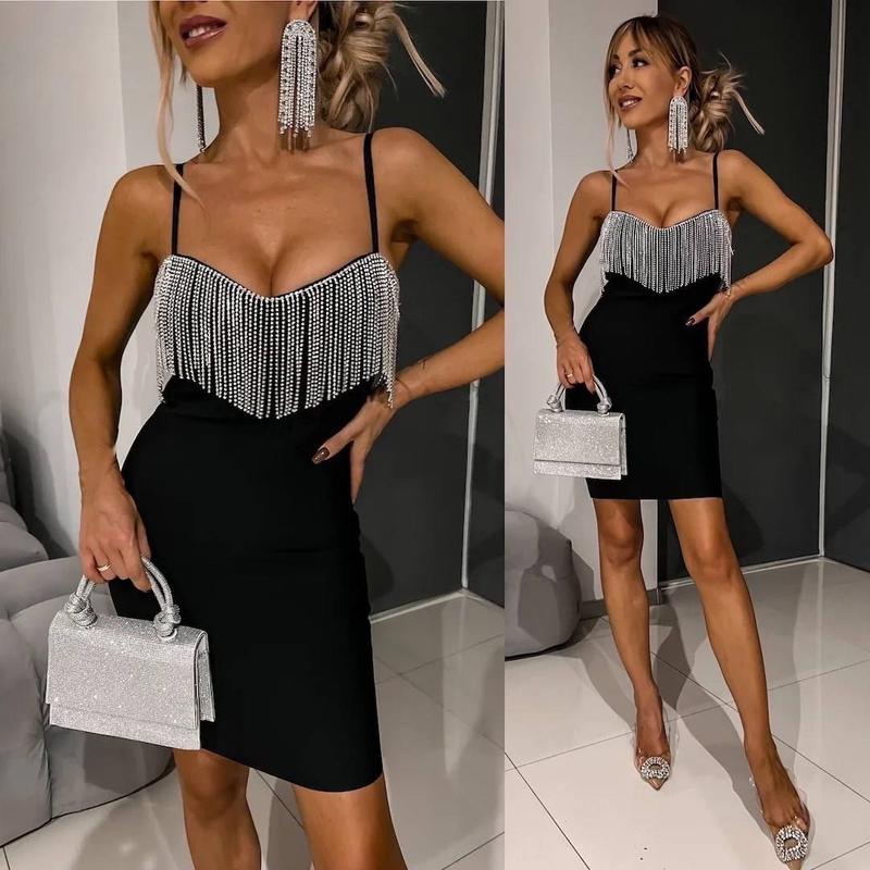 Новинка😍 Сукня Кольори: чорний Розміри: 42-44, 46-48 Тканина: креп дайвінг + бахрома каміння Будь в центрі уваги з нашою сукнею😍 Підкреслює фігуру та додає приголомшливості в твій образ📸