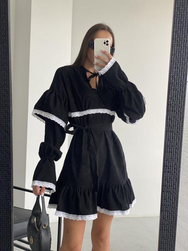 Сукня 📏Размер: 42-44 44-46 46-48 48-50 ✅Описание: платье свободного кроя под пояс с воланами и кружевом, воротничок стойка на завязке Замеры: ➖42 ОГ-102 ОС-106 Длина-90 Рукав от горловины-84 ➖44 ОГ-108 ОС-112 Длина-91 Рукав от горловины-85 ➖46 ОГ-114 ОС-118 Длина-92 Рукав от горловины-85 ➖48 ОГ-120 ОБ-124 Длина-93 Рукав от горловины-86 👆Замеры выполнены по верху изделия, возможны отклонения несколько сантиметров от измерений 🪡 Ткань: микро вельвет + кружево