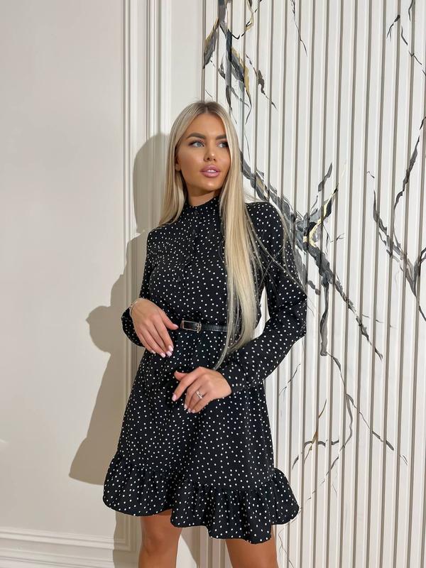 Модель 447 Жіноча сукня Розмірний ряд S,M,L,XL Кольори чорний Тканина софт (м’яка та приємна на дотик) Модель вільного покрою,з довгим рукавом, манжет та планка по груді застібаються на ґудзики Можно носити з поясом так и без Пояс входить до комплекту Супер якість