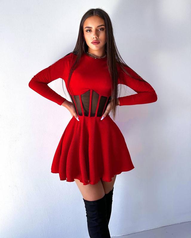 Сукня Мод: 511 ch ▫️Тканина: мустанг рубчик ▫️Розміри: 42-44, 46-48 ▫️Кольори: чорний, червоний