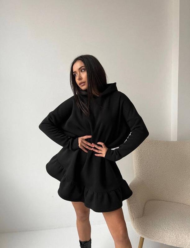 Сукня!! Мод.009 Тканина: якісна трехнитка фліс Колір :чёрний Размер:42-46-(1).48-52-(2) 💸Ціна:1050грн Тепленька сукня, кохання з першого погляду та дотику