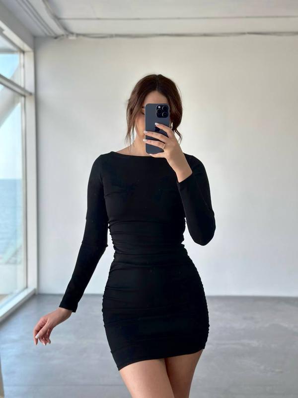 Платье Мод: 1333 bb ▫️Ткань: крепдайвинг ▫️Размер: 42-46 (onesize) ▫️Цвет: бежевый, черный Платье пуш апп со сборками по бокам ▫️Длину платья можно регулировать под Ваше настроение По бокам на резинках. ЗАМІРИ ВИРОБУ (добре тягнеться): ОГ 82-94 см ОТ 62-72 см ПРО 88-100 см Длина 75-90 см Рукав от плеча 60 см
