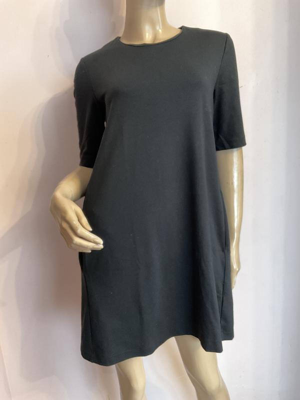 Якісне просте та стильне плаття. Трикотаж не тонкий, тягнеться. Заміри в грудях 45-46 см в талії 48 см в бедрах 52 см е кармани. Довжина 81 см рукав 28 см в плечах 36 см 15:1:24