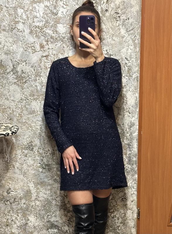 Сукня міні Колір темно-синій з люрексом Розмір С-хс Нова Також в наявності є сукня кольору хакі розмір М В звʼязку з закриттям магазину продаються залишки товару, тому бірки на деяких товарах відсутні