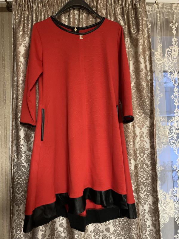 Сукня червоного кольору, та вставками із екошкіри. Розмір 46-48. Стан хороший