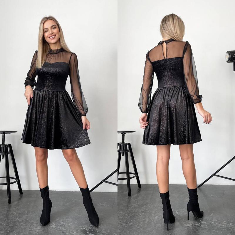 Модель 5482 Жіноча сукня Розмірний ряд S,M,L,XL Тканина оксамит з напиленням та сіточка Дуже гарна та нарядна модель Застібаєтсья по спинці на ґудзик Супер якість Ціна 780 грн.катри