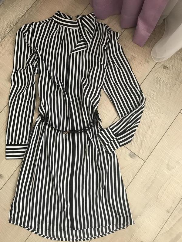 Платье изысканное и легкое! Прямой крой,в черно-белую полосу.Чедно дополнит ваш образ с ремешком или без. Состояние нового одевалось раз в событие. Размер XXS.