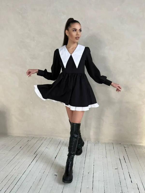 Сукня з котону з білим комірцем та подвійною спідницею плаття в стилі wensday
