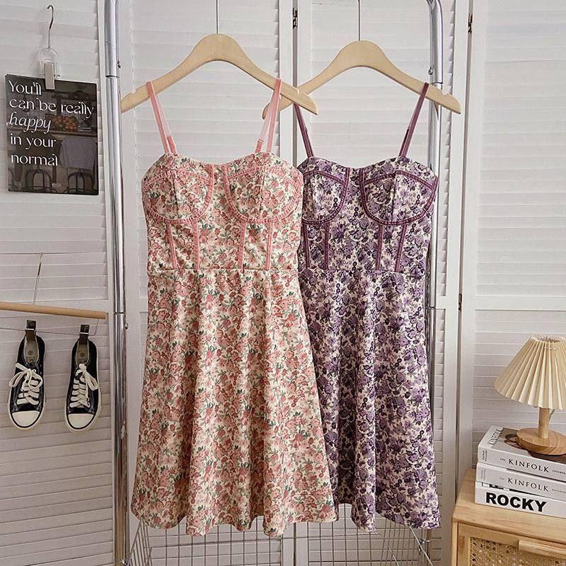 2132 Ніжна літня сукня на тонких брителях з квітковим принтом☀️ Сукня з витонченими тонкими бретелями стане спокусливим літнім трендом❤️🔥 Колір: рожевий,бузковий Розмір: універсал 42-44 Замеры: ог до 90,сзади на спинке на резинке ,от до 68,об до 90,длина от начала бретелек 84,бретельки регулируются Ціна:649грн