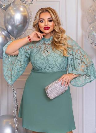 Плаття Розміри: 46-48; 50-52; 54-56 Тканина: костюмна+ гипюр Заміри: Обхват грудей-94/102/110см Обхват талії -86/94/102см Обхват стег**********см Довжина рукава -56 см Довжина виробу -97 см