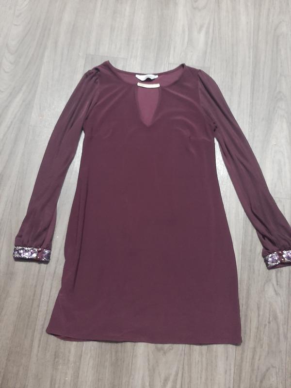Продам бордову туніку-сукню Dorothy Perkins у відмінному стані. Розмір М. Рукава прозорі сітчасті, манжети оздоблені вишуканими паєтками та ґудзиками, елегантне декольте зроблять Ваш вигляд неймовірним. Заміри : Довжина - 78см ПОГ - 40см Рукав - 56см Плечі - 33см