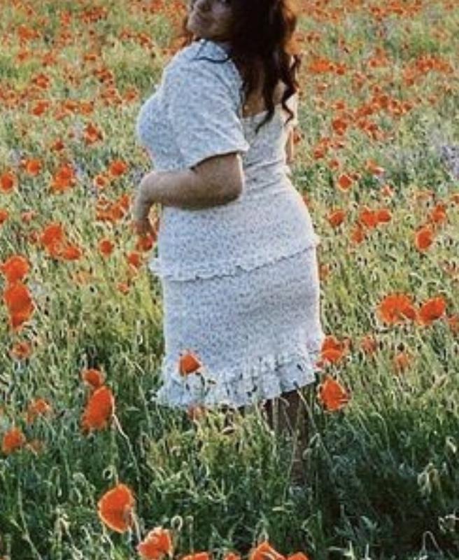 Сукня в квітковий принт, матеріал резинчатий, тому сукня йде на М,Л, Хл, Ххл. На фото на розмірі Хл